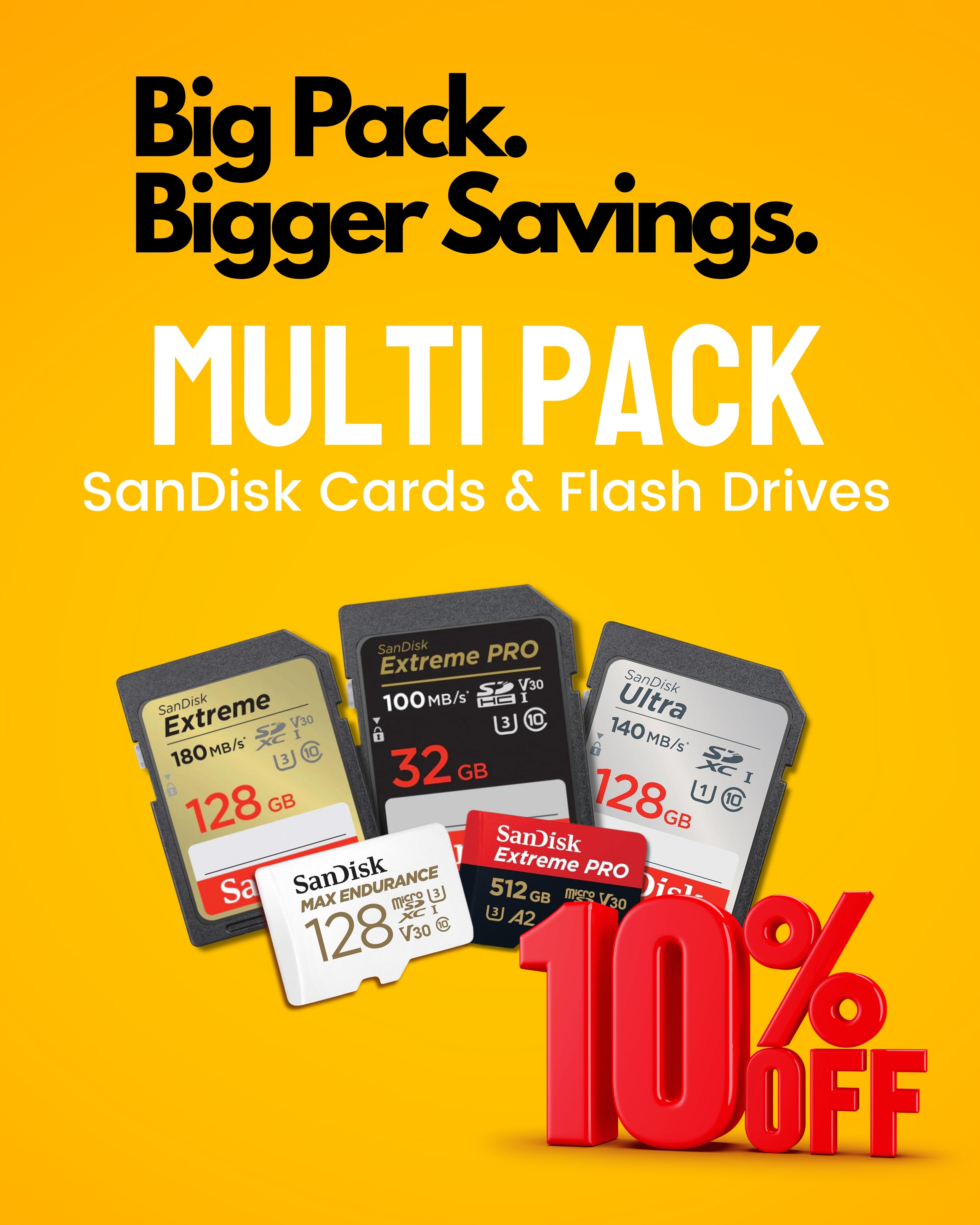 10 Pack SanDisk Extreme SDXC UHS-I SD Memory Card – U3, V30, C10, 4K UHD Compatible